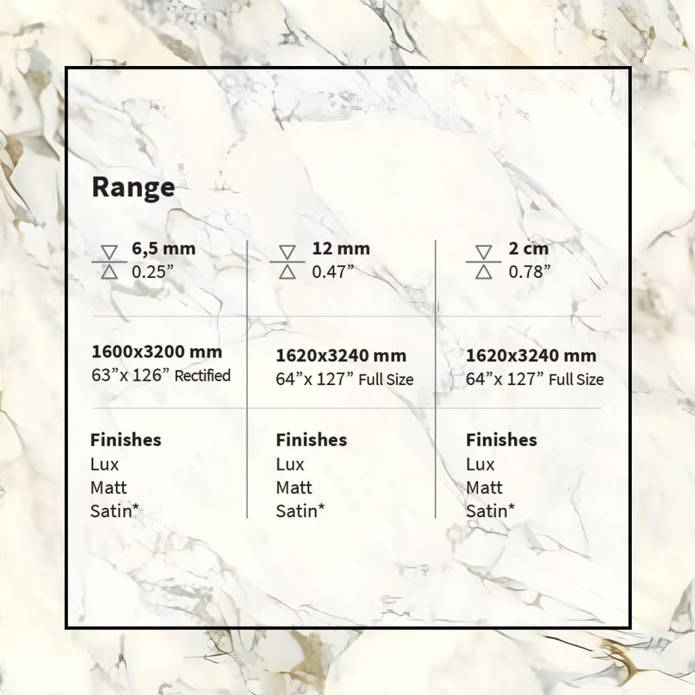 You select among three sophisticated finishes: Lux, Matt, and Satin. Moreover, the Lux finish enhances the marble effect with mirror‑like depth. Furthermore, the Matt finish delivers a soft, contemporary appearance with reduced reflection. Additionally, the Satin finish balances subtle sheen with a velvety feel. Therefore, Arabescato Fine Vein responds to different lighting conditions and style languages effortlessly.