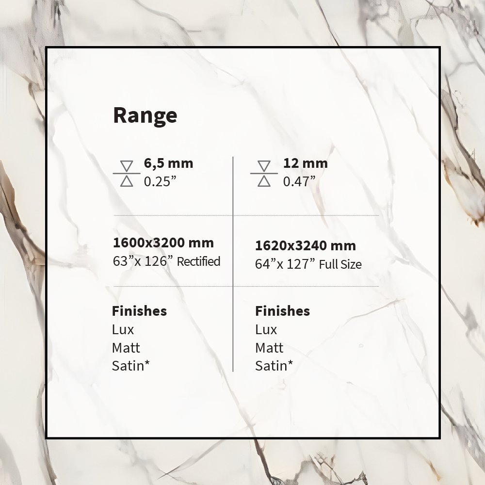 Cala Ambra slabs shine in Lux, Matt, and Satin finishes. Additionally, they come in 1620×3240 mm full size. Also, opt for 1600×3200 mm rectified format. Furthermore, Italslab crafts them in Italy with precision.
