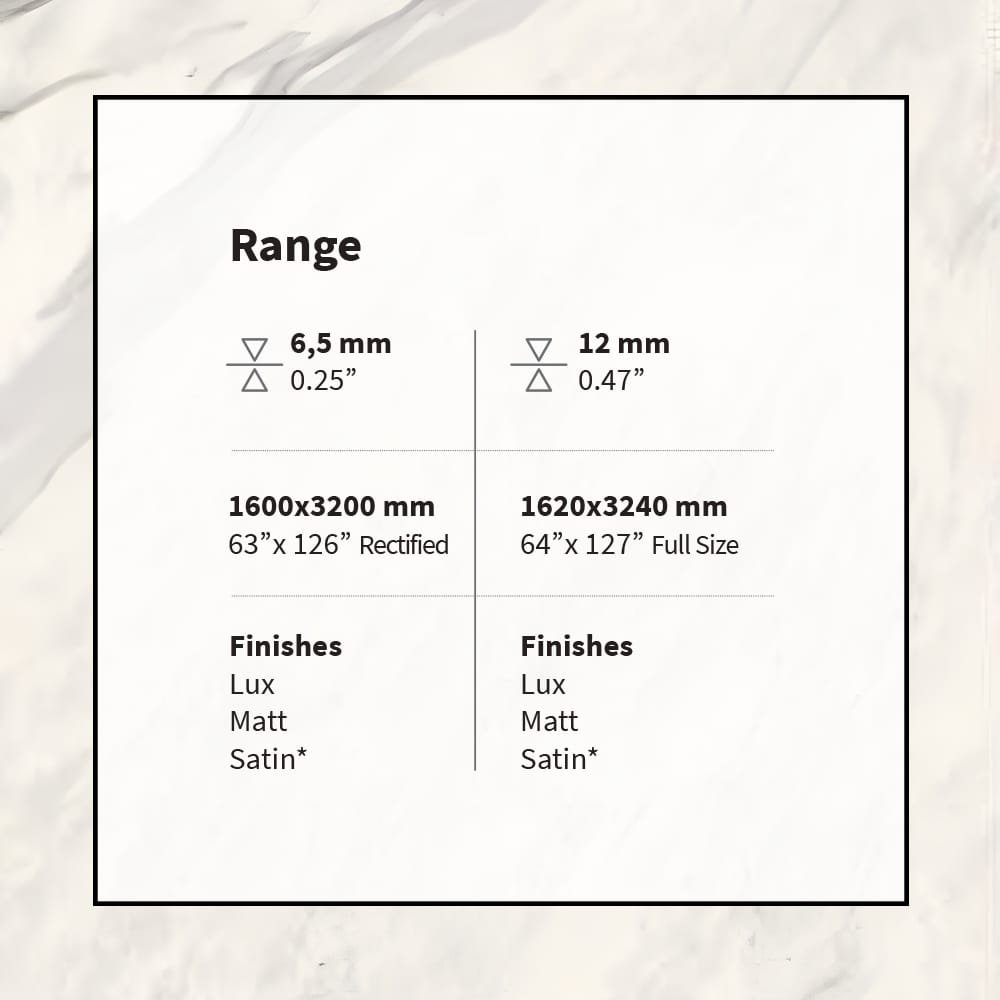 You choose 6.5 mm or 12 mm thickness options readily. Furthermore, opt for Lux, Matt, or Satin finishes versatilely. Dimensions span 1620×3240 mm full size grandly. Rectified cuts provide 1600×3200 mm accurately. Thus, expansive installations align perfectly always. Meanwhile, fiber reinforcement strengthens slabs upon request dependably.