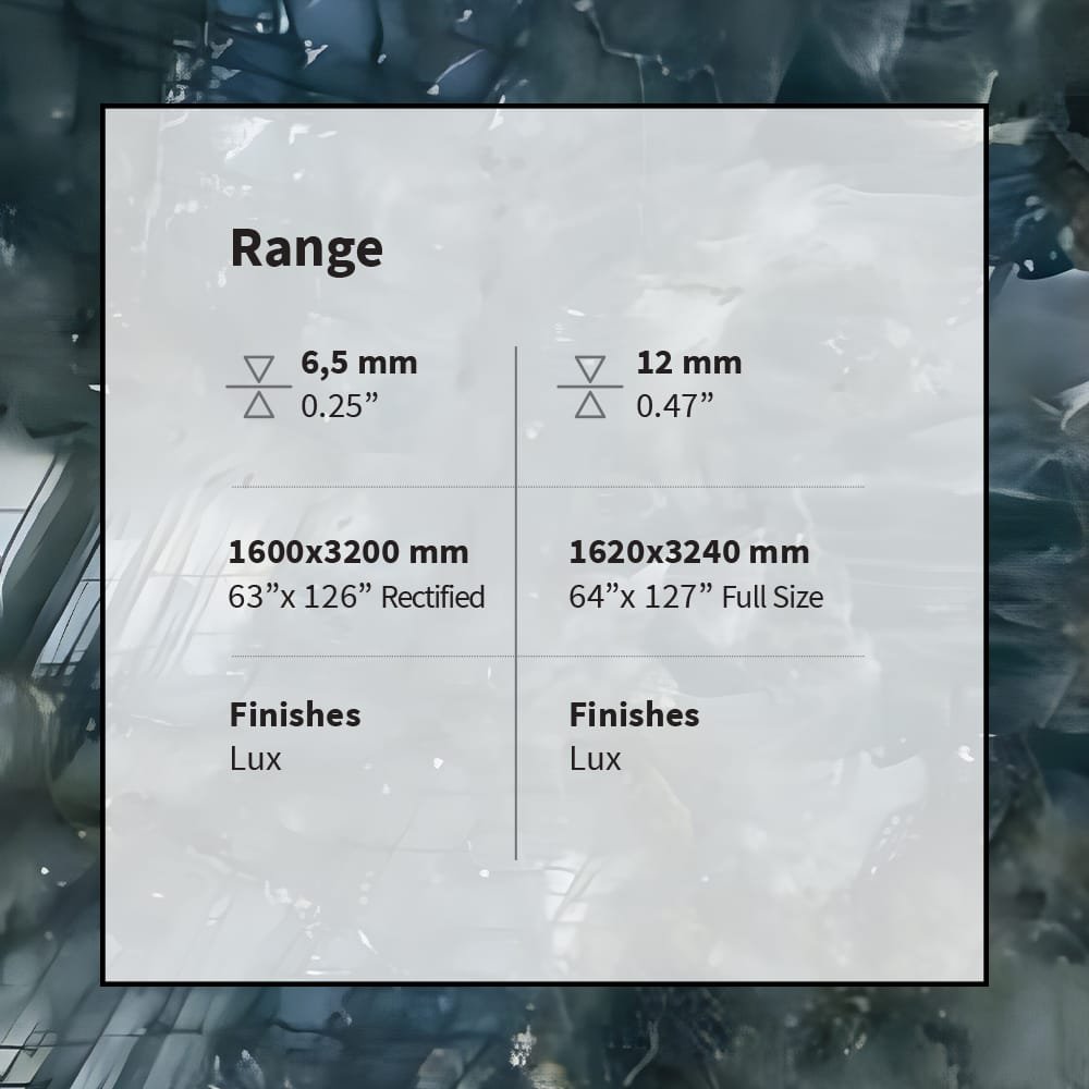 You select 6.5 mm or 12 mm thicknesses strategically. Also, you choose the Lux finish to exalt luminosity. The generous 1620×3240 mm format supports bold, continuous compositions. Rectified 1600×3200 mm slabs refine alignment precisely. Thus, large surfaces read as sculptural monoliths. Meanwhile, optional fiber reinforcement enhances structural reliability. Consequently, daring design gestures retain long-term stability effortlessly. Next, expansive fields narrate geological stories compellingly.